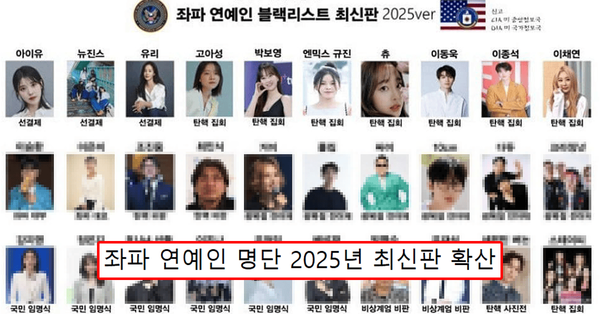 "유재석,아이유,이동욱,싸이"...좌파 연예인 블랙리스트 2025년 최신판 확산 (+우파 연예인 명단)